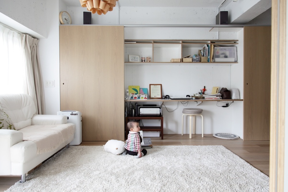 ▷リビングの収納扉を開けるとワークデスクがある家。こちらの方はお子さんが大きくなったら再リノベで個室をつくろうかな、とおっしゃっていました