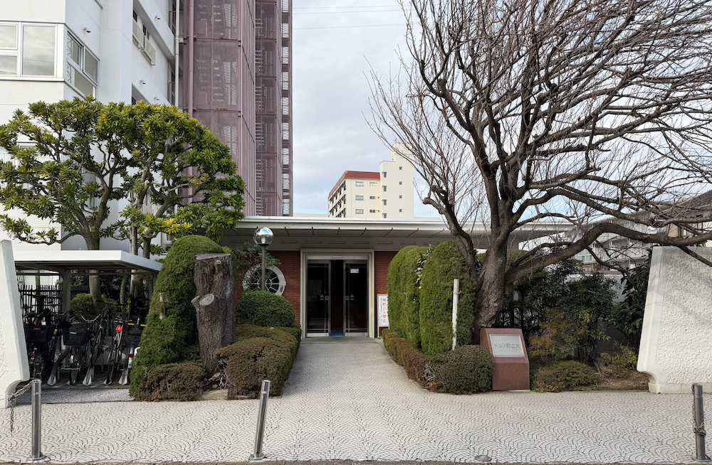 周囲の建物よりも高いため、目立つ存在です。エントランスは建物の東西に2箇所あり、メインエントランスは東側に位置しています。アプローチはよく手入れがされた植栽が贅沢に植えられていたり、アプローチにはかわいいモザイクタイルが敷き詰められている、ヴィンテージマンションらしい建物です。