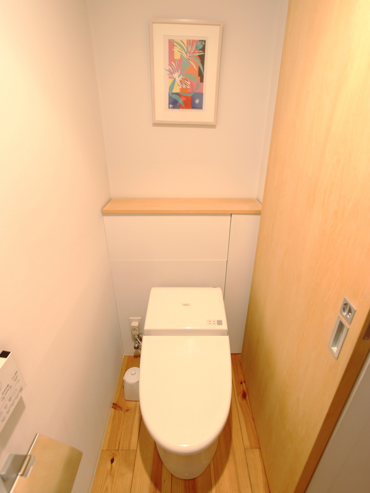 ▷トイレはロータンクタイプ。ニッチ収納の一部は収納になっていて、トイレットペーパーや掃除用品を収納できます