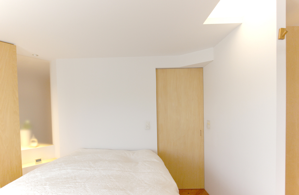 ▷ベッドルームにも天窓のような照明があり、2色のライトの組み合わせで調光ができるもの。内見の際に実際のご覧いただけます