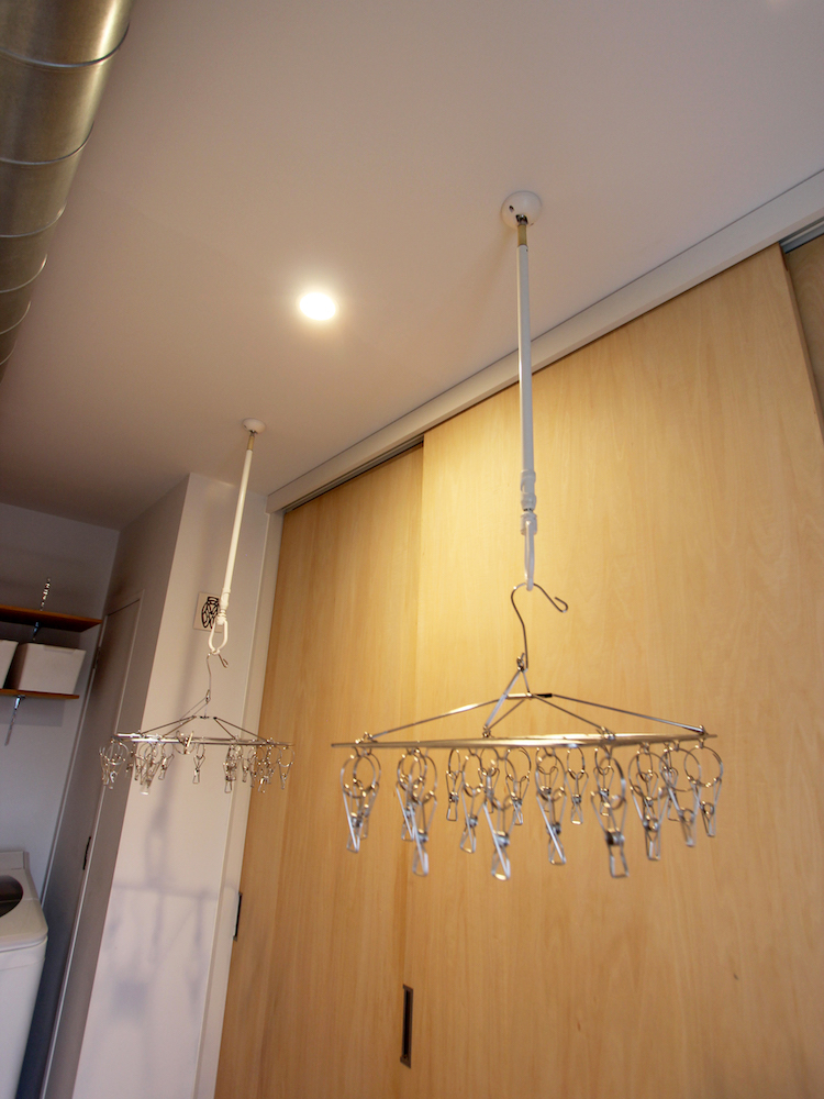 ▷室内物干しも可能です。吊り下げポールは着脱可能なタイプ