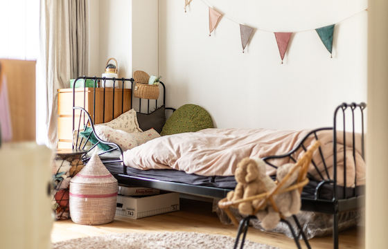 ▷お子さんの部屋は、成長に合わせてプライベートを保てるよう、扉を設けた個室にしました