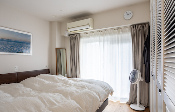 ご主人:寝室って寝る時以外は使わないので、そこにL字型のハンガーバーを設けて、エアコン・除湿機・扇風機を駆使して「ランドリールーム」のように使えるようにしたのは大正解でした。