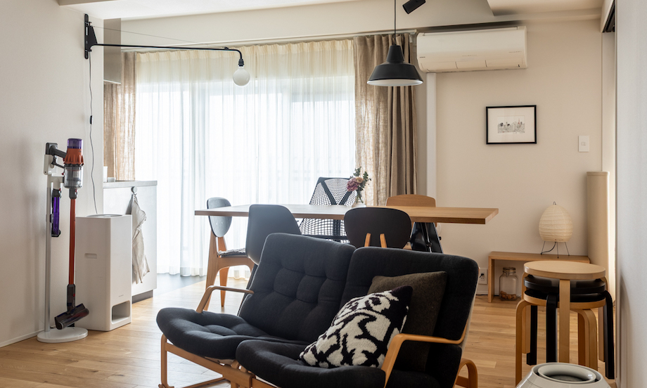 港区に建つ築40年超・約64㎡のヴィンテージマンション。数年賃貸で暮らしたこの部屋をご縁あって購入し、日々感じていた小さなストレスや悩みを解決するためにフルリノベーションされました。間取りは大きく変えず、視線の抜けや生活動線を緻密に再構築。結果、奥様が時間をかけて買い集めた名作家具が美しく引き立ち、お子様の小学校入学というライフステージの変化にもフィットする空間に。超都心で暮らしを「最適化」する家づくりのヒントを伺いました。