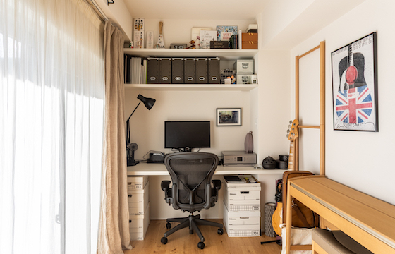 奥様:ピアノは娘が習っているのですが、主人も楽器を演奏するので、子ども部屋ではなく書斎に置いています。奥行きのない省スペースなサイズ感が、この部屋にぴったりでした。
